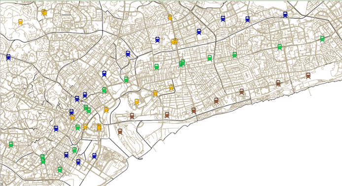 After we have completed the standardisation and changing of the symbology and colours, we will now piece the layers together. Our analysis will be based on each Catchment Area based on 10mins or 15mins walking time.