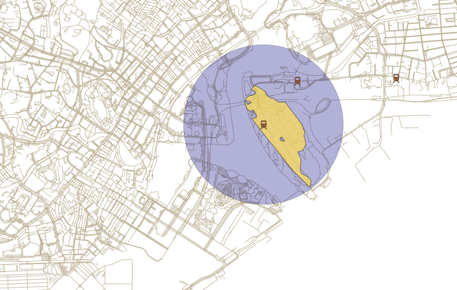 We will be using a standardised colour across all 10min and 15min Buffer Layers. In addition, the transparency will be lower for clearer visibility of the catchment area.