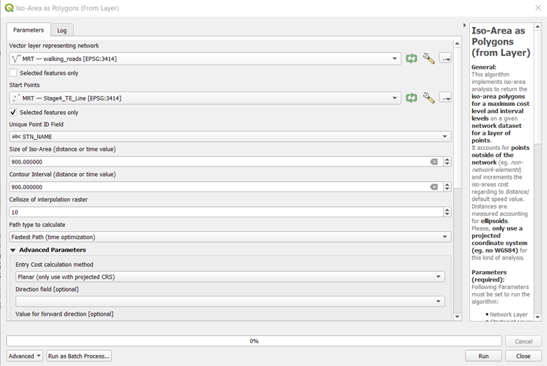 Under Size of Iso-Area and Contour Interval, input 900 (15 mins = 900 seconds).