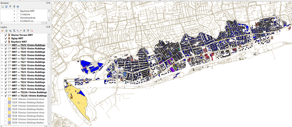 Repeat the Steps for Buffer, Iso-Area Polygon and Catchment area buildings for the rest of the Stage 4 Thomson-East Coast Line.